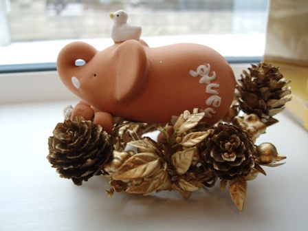 院長の大好きな『象』さんの置物をクリスマス風にアレンジ。