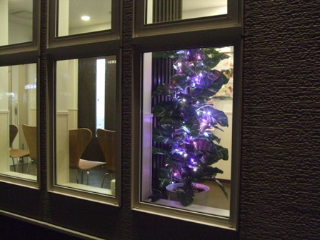 待合奥の光触媒脱臭のグリーンには、電飾をつけてみました。